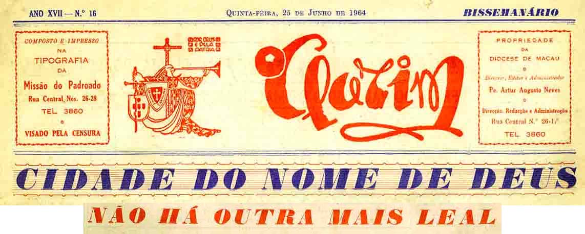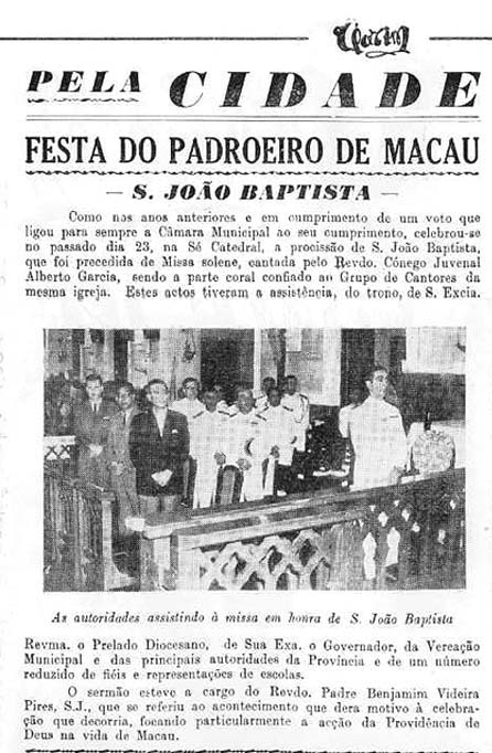 A missa celebrada na Sé Catedral, em Macau, por ocasião do Dia de Macau e do seu Padroeiro, São João Baptista. Noticiado na edição do Clarim acima.