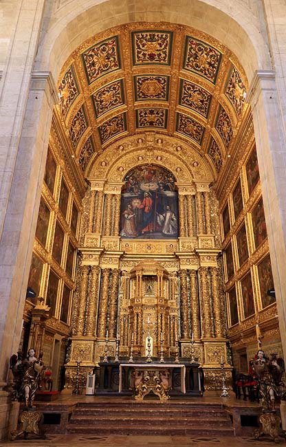 O altar-mor data de 1665-1670, executado pelo irmão João Correia e auxiliares. Possui uma rica talha dourada, de grande importância artística e histórica, sendo um dos poucos altares maneiristas do Brasil. Em 1670 foi aberto um camarim na parte superior para exposição do Santíssimo Sacramento, decorado com painéis com as imagens de Santo Inácio e São Francisco Xavier, pintadas pelo irmão Domingos Rodrigues, autor de outros painéis na mesma capela.