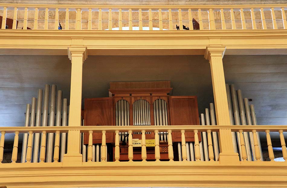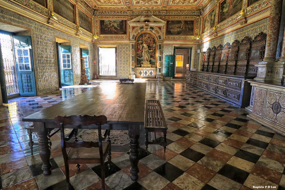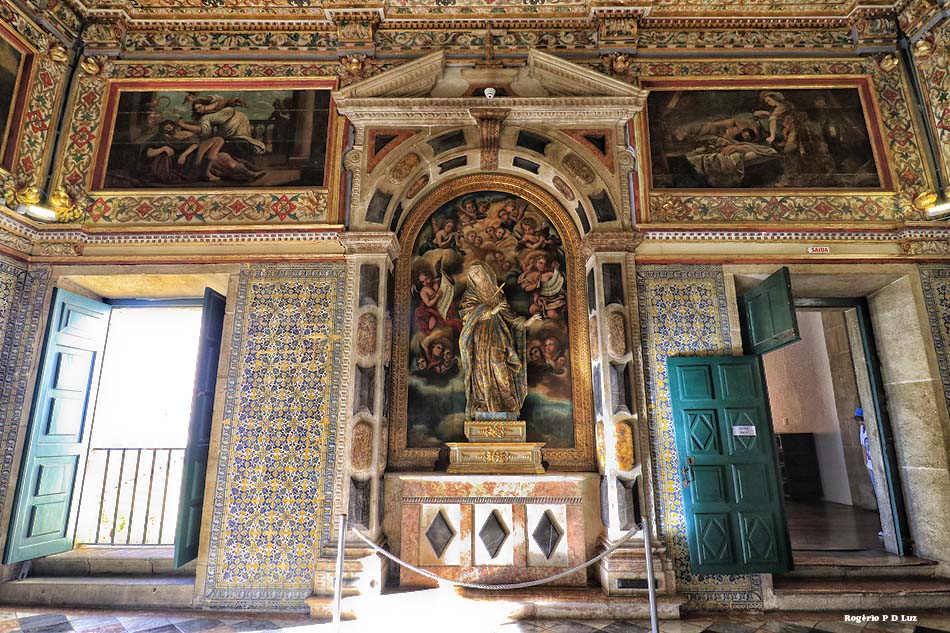 Na parede sobre o arcaz existe uma série de grandes pinturas sobre o Antigo Testamento, e o teto é decorado com pintura em caixotões, mostrando mártires e apóstolos jesuítas junto com motivos florais em estilo maneirista. As paredes são revestidas até meia-altura de azulejos pintados.