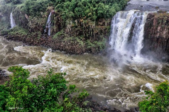 Cataratas do Iguaçu (em castelhano: Cataratas del Iguazú) é um conjunto de cerca de 275 quedas de água no rio Iguaçu (na Bacia hidrográfica do rio Paraná), localizada entre o Parque Nacional do Iguaçu, Paraná, no Brasil, e o Parque Nacional Iguazú em Misiones, na Argentina, na fronteira entre os dois países. A área total de ambos os parques nacionais corresponde a 250 mil hectares de floresta subtropical e é considerada Patrimônio Natural da Humanidade.