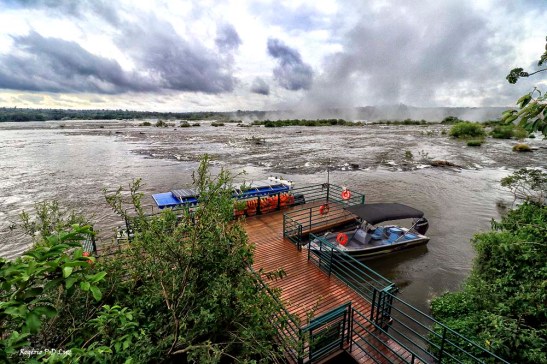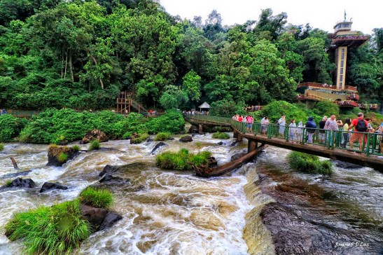 O passeio pela trilha para observar as Cataratas começa aqui, que é o ponto de desembarque dos ônibus. Do outro lado fica um luxuoso hotel, o único localizado dentro do parque.