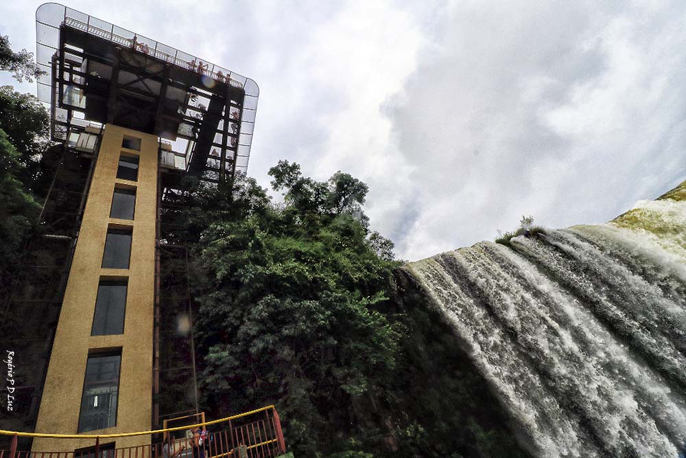 A torre com elevadores no final da trilha tem loja de souvenirs e no topo, caminhando um pouco, está o ponto dos ônibus para o retorno e tem uma praça de alimentação.