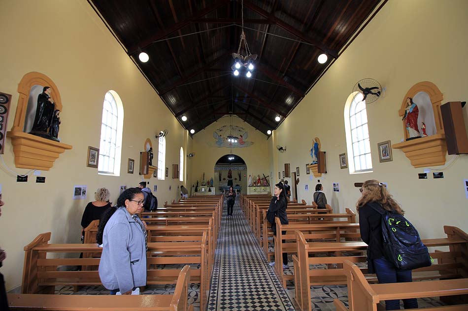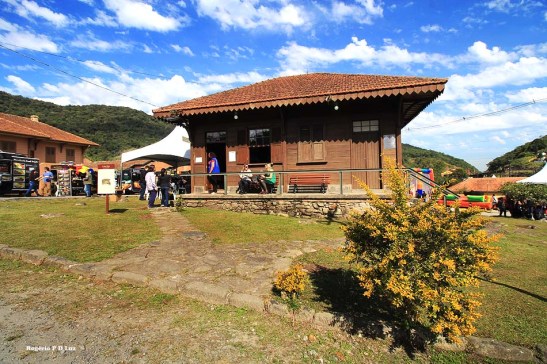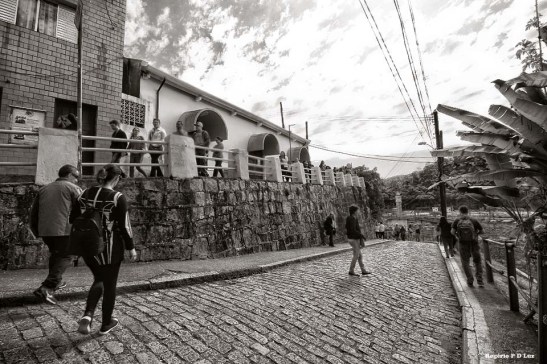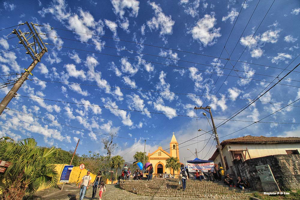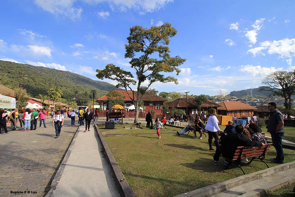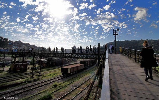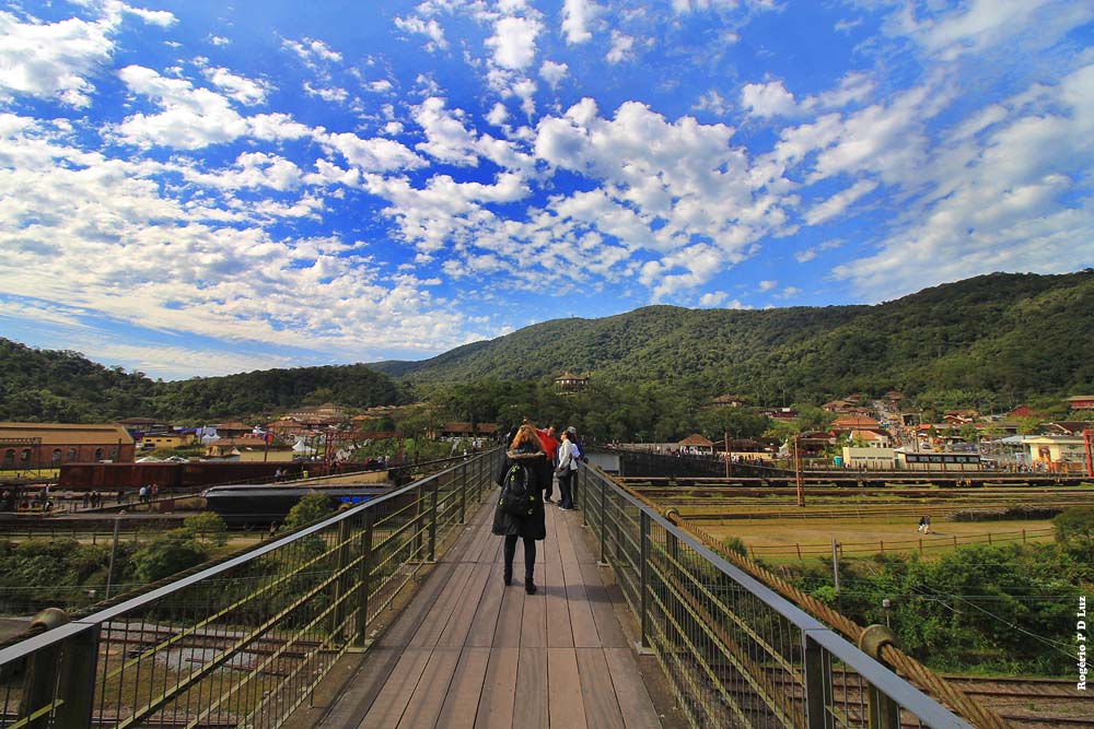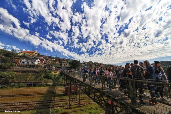 Nesta edição, já tendo feito muitas fotos anteriormente de Paranapiacaba, com nevoeiro e com sol, decidi fazer as fotos apenas com a lente grande angular de 10-18 mm da Canon. Ainda bem que até o fim do nosso passeio já no meio da tarde, o céu continuou azul com flocos de nuvens, sem nevoeiro, nuvem baixa e frente fria, como no ano passado, que acabou causando uma gripe danada por falta de precaução em levar agasalho para essas situações, o que é peculiar em Paranapiacaba. Assim, mesmo com calor, vá preparado para uma descida de temperatura e um nevoeiro que só dá para enxergar uns 10 metros ou menos do seu entorno, de uma hora para outra.