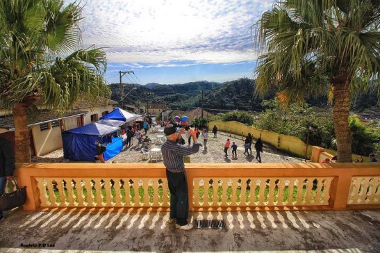 Da mureta da igreja pode-se ver várias barracas de alimentação oferecendo bons salgados e pastéis a preços acessíveis.