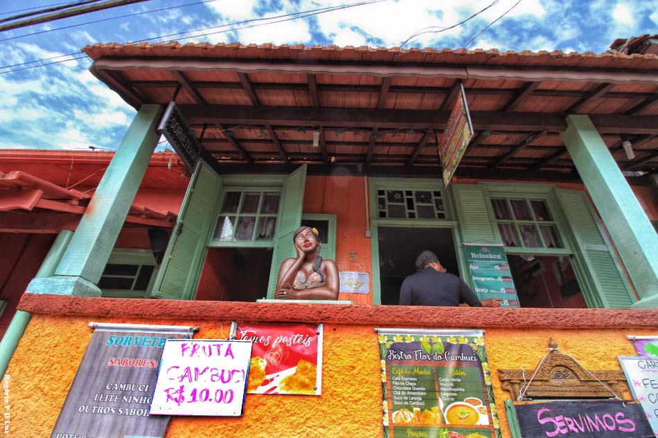 Na ladeira há estabelecimentos de comidas e bebidas.