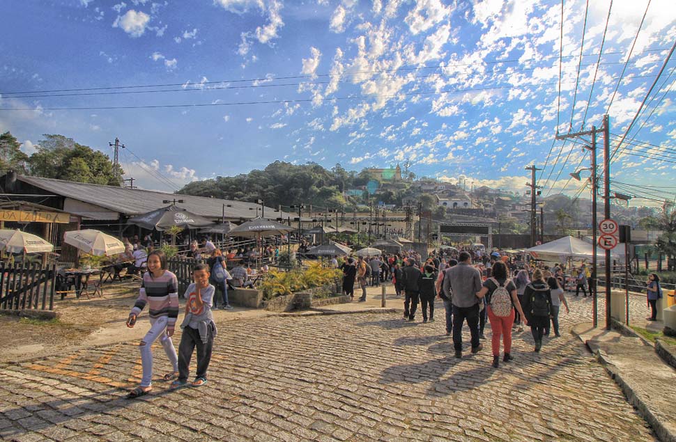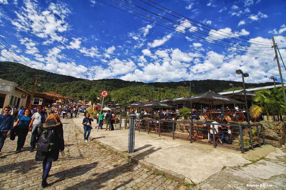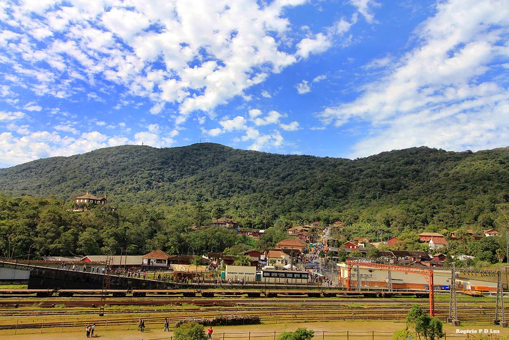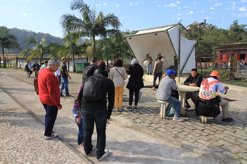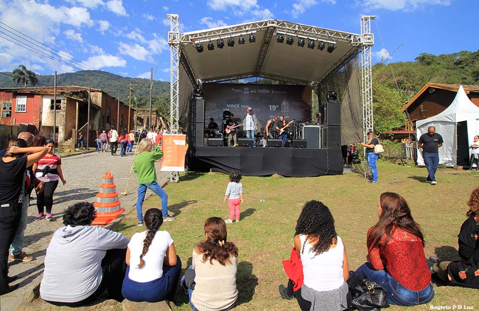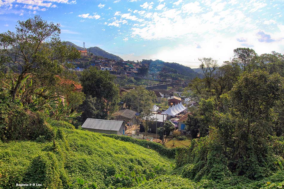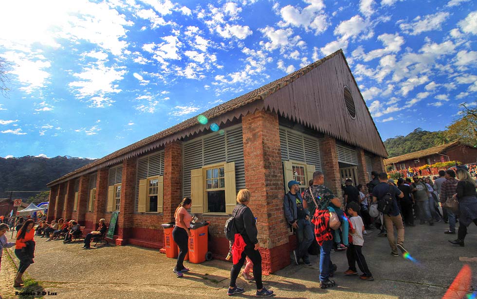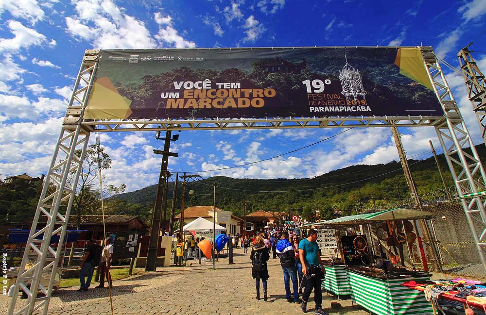 Nesta 19ª edição do Festival de Inverno de Paranapiacaba, em 2019, já lá fomos no primeiro dia, em 20 de julho, e pudemos perceber grande afluência de público, desde cedo, dando impressão que o evento anual está se tornando mais popular com ajuda da divulgação pela internet e meios de comunicação. Afinal de contas, a antiga vila inglesa fica logo aí, a pouco mais de 60 km de São Paulo de carro, ou viagem de uma hora e meia via metrô (da Paulista)/trem e ônibus via Rio Grande da Serra, ponto final do trem da CPTM, até menos dependendo do ponto de partida. Esta última opção é a que adotamos. De carro você tem que estacionar num pátio designado pouco antes da vila, pagar a estadia e de lá te levam de ônibus fretado.