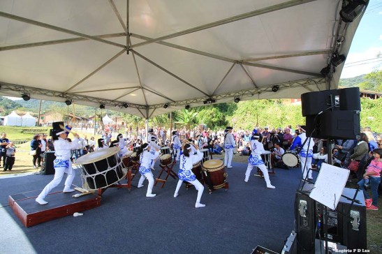 No Espaço Viradouro aconteceu a apresentação de Taiko Kiendaiko (tambores japoneses) no primeiro dia do Festival.
