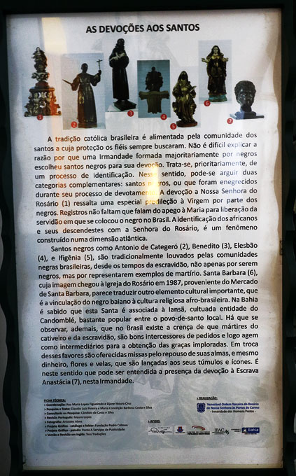 No Brasil colônia, os negros escravos e alforriados (forros) eram particularmente devotos de Nossa Senhora do Rosário, São Benedito, Santa Efigênia, Santo Elesbão e alguns outros santos. De acordo com frei Agostinho de Santa Maria, desde os inícios do século XVII os escravos e forros veneravam Nossa Senhora do Rosário num altar da Sé da Bahia, em Salvador. Como outros grupos da colônia, também os negros se organizavam em agrupações religiosas de ajuda mútua, as chamadas irmandades ou confrarias. Na segunda metade do século XVIII, quase todas as freguesias de Salvador possuíam alguma irmandade de negros.