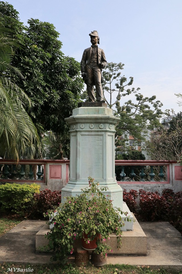 Estátua do Conde de Senna Fernandes, Bernardino de Senna Fernandes, colocada no jardim da “Casa Garden”. Figura destacada do século XIX, desempenhou diversos cargos, designadamente o de
