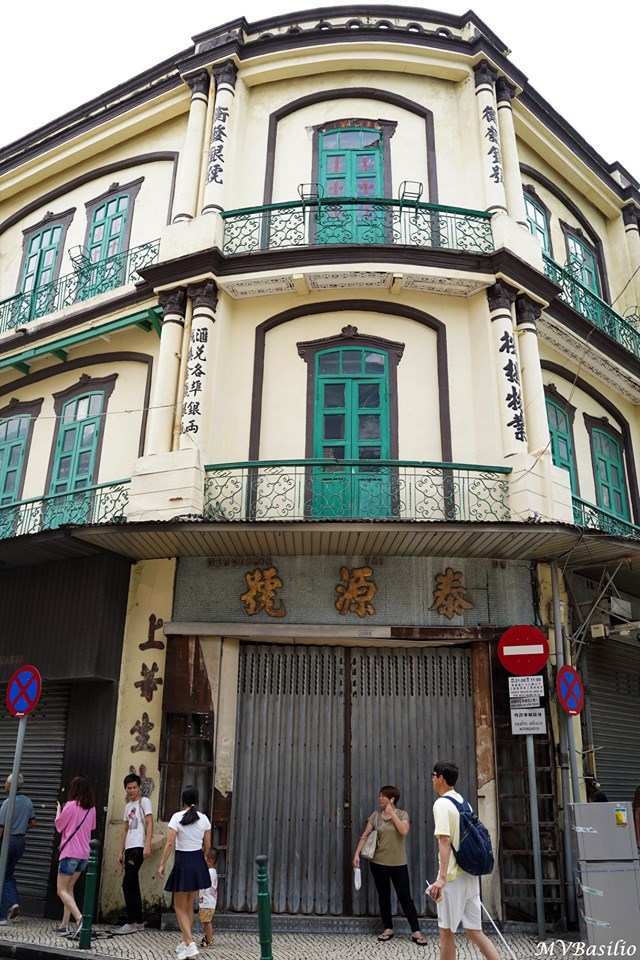 O antigo Banco Hang Fát, visto num ângulo diferente. Existiu posteriormente no r/c uma loja denominada Mercearia Tai Un Hou (泰源號), que também já encerrou actividade há muito tempo. Foto MV Basílio
