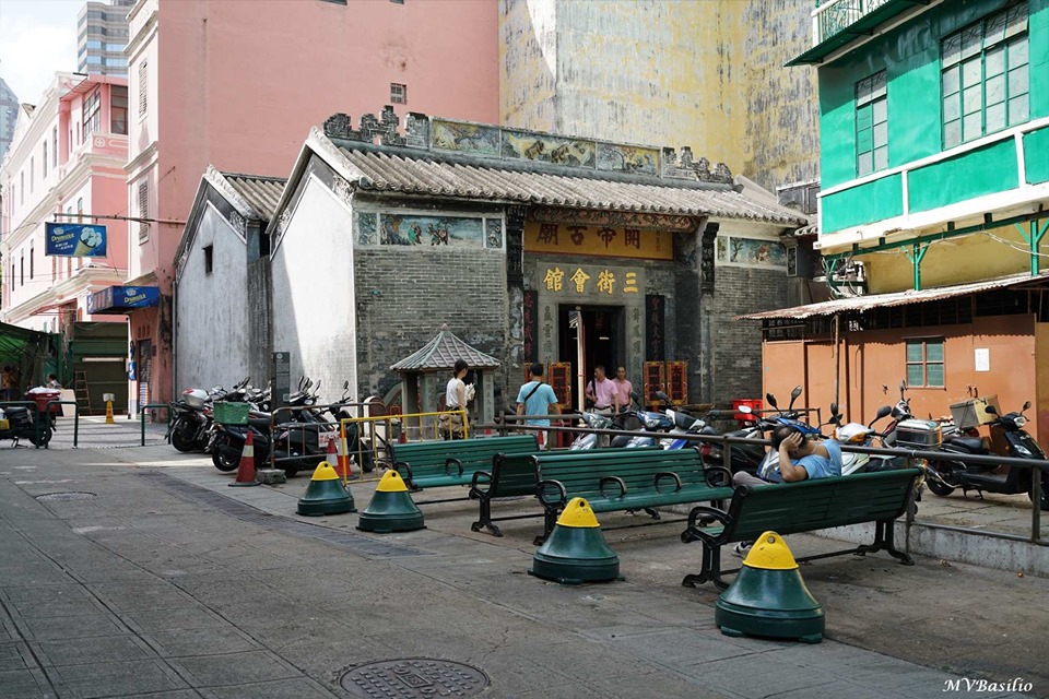 Este Templo, designado “Sám Kái Wui Kun” 三街會館 (“Sám Kai” 三 街 , três ruas, e “Wui Kun” 會館 , sede de uma corporação”, associação ou agremiação), está situado junto da zona antiga do Bazar Grande. Construído em data desconhecida, provavelmente em finais do século XVIII, era o local onde representantes do comércio de três ruas do Bairro Chinês – Rua dos Mercadores, Rua das Estalagens e Rua dos Ervanários, se reuniam, sempre que necessário, para tratar de assuntos de interesse comum. Esta “associação das três ruas” é tida como precursora da Associação Comercial de Macau, que só foi fundada por negociantes chineses em 1913. Com a mudança da sede da associação, o Templo passou a servir exclusivamente como local de culto da divindade Kuan Tai ou, em mandarim, Guan Di (關帝), símbolo da lealdade e justiça. Foto MV Basílio