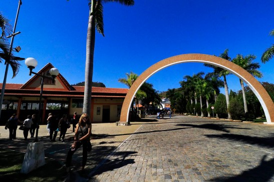 A Estação Porto e o arco que é o portal de entrada do Porto Itaguaçu, onde nas águas do rio a imagem milagrosa de Nossa Senhora Aparecida foi encontrada em 1718.
