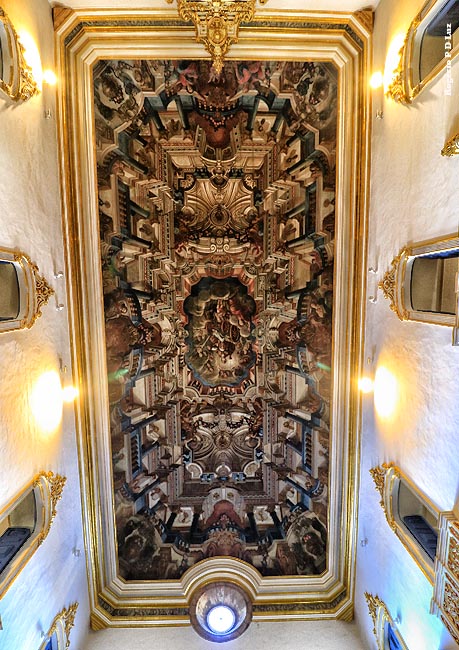 O teto da nave, com pintura de perspectiva ilusionista barroca, é atribuído a Antônio Pinto e Antônio Dias, porém a confirmar.