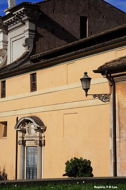 que significa “[Este] monumento, notável em termos religiosos e artísticos, se enfraqueceu com a idade: Pio, o Sétimo, sumo pontífice, com novas obras no estilo antigo, ordenou que ele fosse reforçado e preservado. No 24º ano de seu principado”.