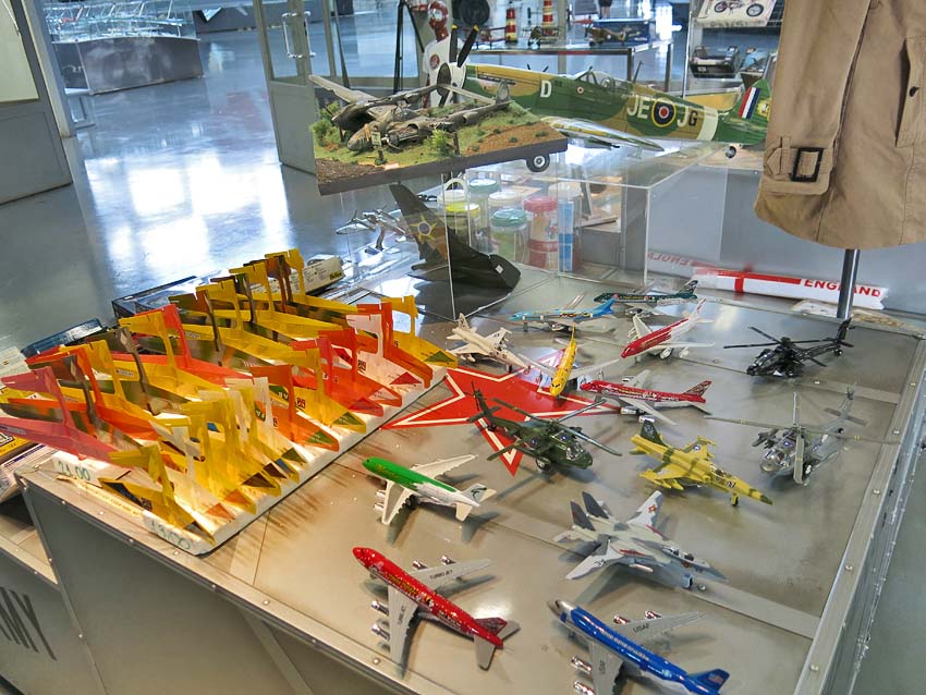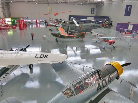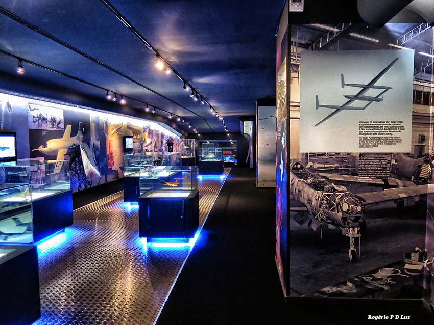 No corredor cultural, maquetes de aviões, vídeos, cartazes, fotografias etc. Se visse tudo, perdia-se mais de hora.