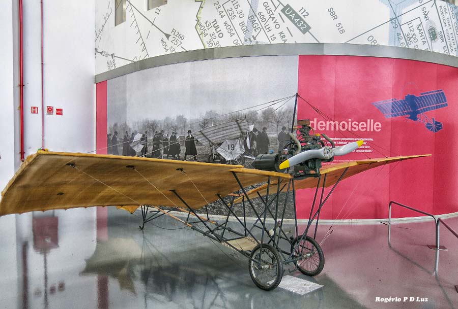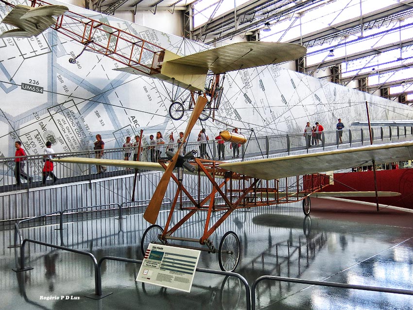 Suspenso no ar, a réplica em tamanho real do Blériot XI e no chão,réplica do “DSL São Paulo” ou “D.S. De Lavaud”, que fez o primeiro voo da América Latina em 1910, que é uma façanha esquecida, do inventor franco-brasileiro Dimitri Sensaud de Lavaud que projetou, construiu e voou com seu aeroplano.