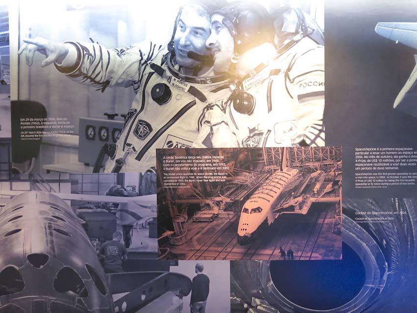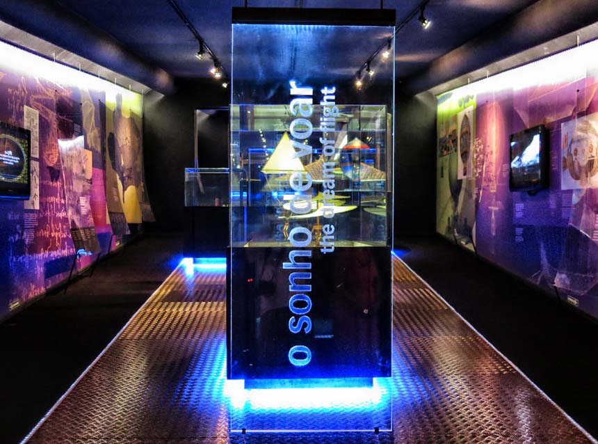 O início obrigatório da visita se fazia por um corredor cultural bem elaborado, com informações da aviação e outros feitos como o aeroespacial.