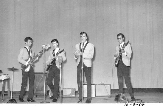 Actuação do conjunto “The Grey Coats”, no 1º Festival de Música, realizado no Teatro Cheng Peng, em 1963. Foto: Cortesia de Leonardo Amarante