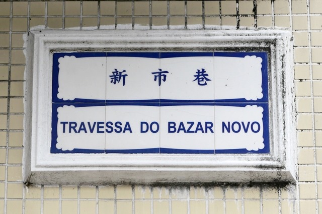 Placa toponímica da Travessa do Matadouro, cuja designação em chinês é “Cheng Peng Kái” (清平街, isto é, Rua de Cheng Peng). Foto MV Basílio