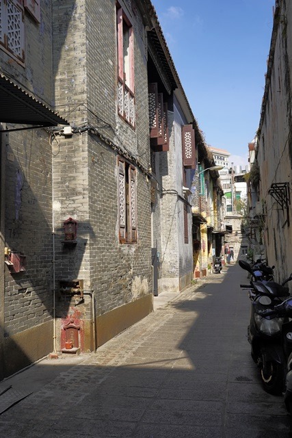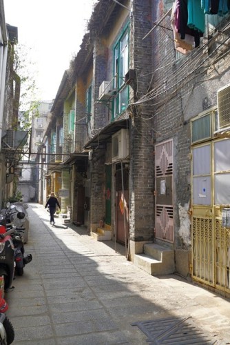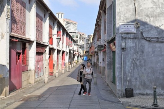 O conjunto de prédios do Beco da Felicidade. No lado esquerdo, está uma das casas recuperadas, que actualmente serve para a divulgação de cultura, denominada “Hall de Cultura” (文化公所). Foto MV Basílio
