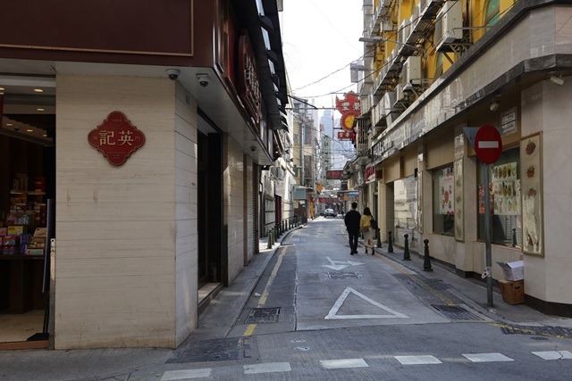Travessa do Auto Novo, em Dezembro de 2019. Ao fundo, do lado esquerdo, era a entrada principal do antigo Teatro Cheng Peng. Foto MV Basílio