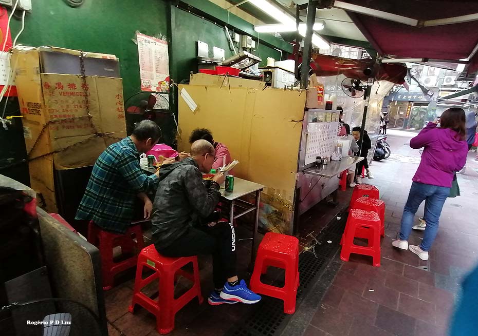 Pode até impressionar os ocidentais essas tendas de comida de rua, mas informações dão conta que têm bom sabor, comida típica chinesa a preço módico. Vamos experimentar no próximo passeio a Macau.