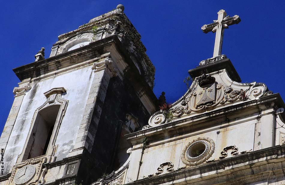 O coroamento da fachada da igreja (frontão), com a cruz e o brasão carmelita esculpidos em pedra de Lioz trazida de Portugal. De acordo com o IPHAN, o estilo da fachada é de rococó tardio e apresenta janelas tipo D. Maria I. O tombamento da igreja e todo o seu acervo ocorreu em 1985.