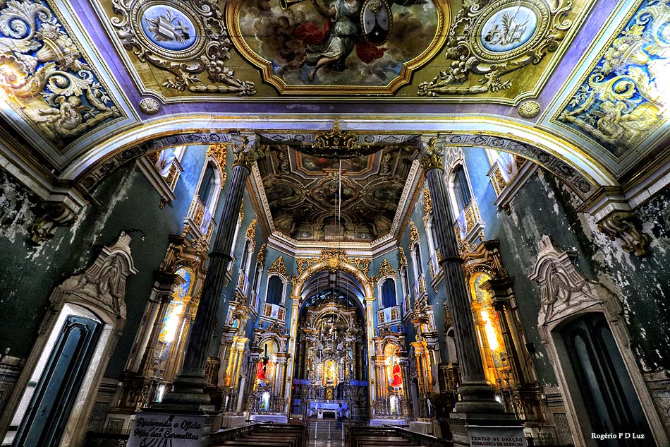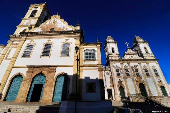 No lado direito, a Igreja da Ordem Terceira do Carmo, e à esquerda a Igreja e Convento da Ordem Primeira do Carmo onde também tem um hotel.