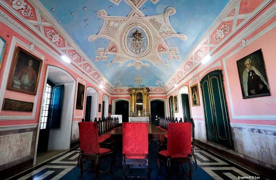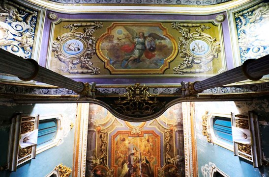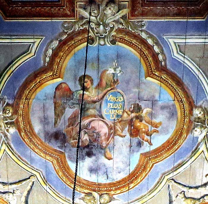 Nossa Senhora do Carmo entregando o escapulário a Santa Teresa D`Ávila e a São João da Cruz (detalhe – forro da nave) :ca. 1817. Autor da obra:Teófilo de Jesus