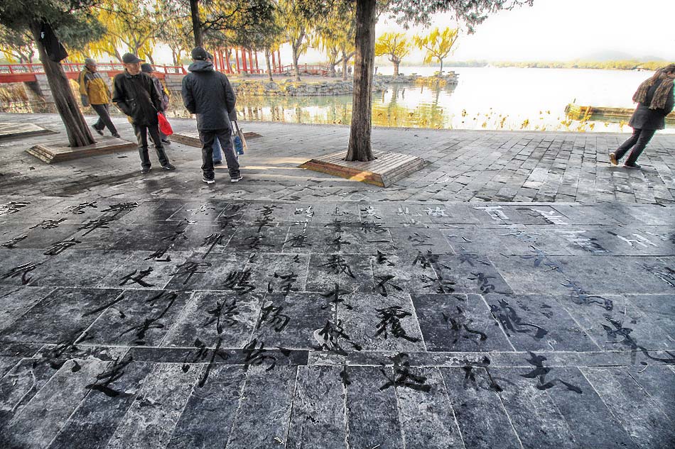 A margem do Lago (artificial) Kunming revela um ambiente tipicamente chinês: