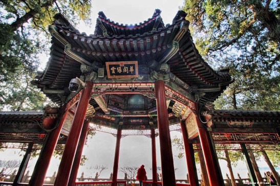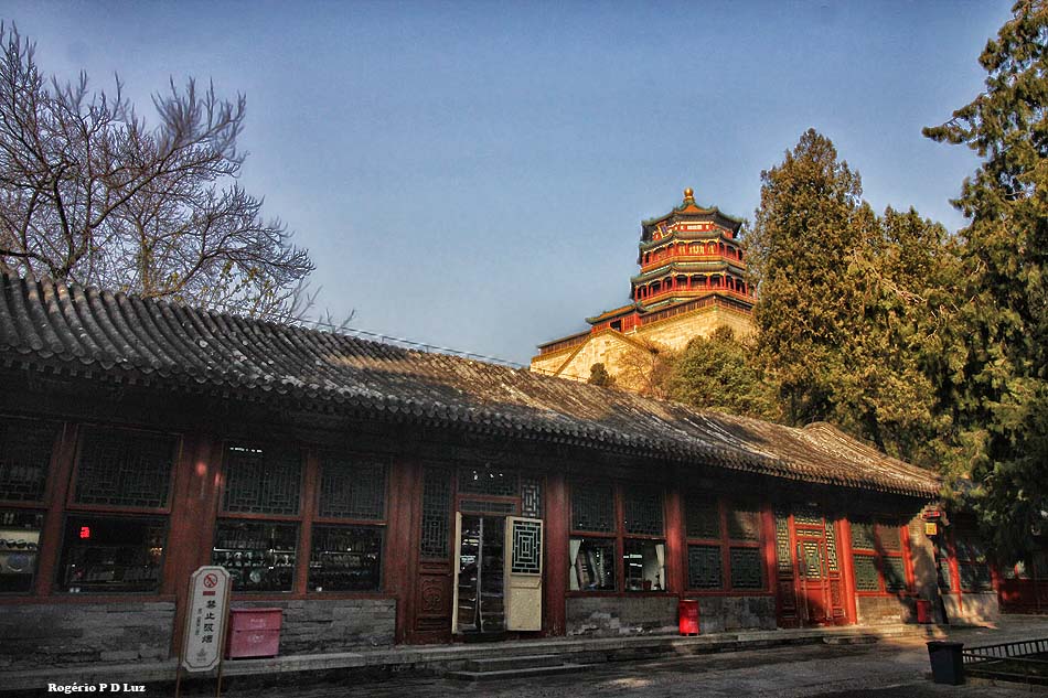 O pavilhão abaixo faz parte do complexo da Colina de Longevidade que tem logo atrás, no topo, o Pagode do Incenso Budista ou Torre da Fragrância do Buda: