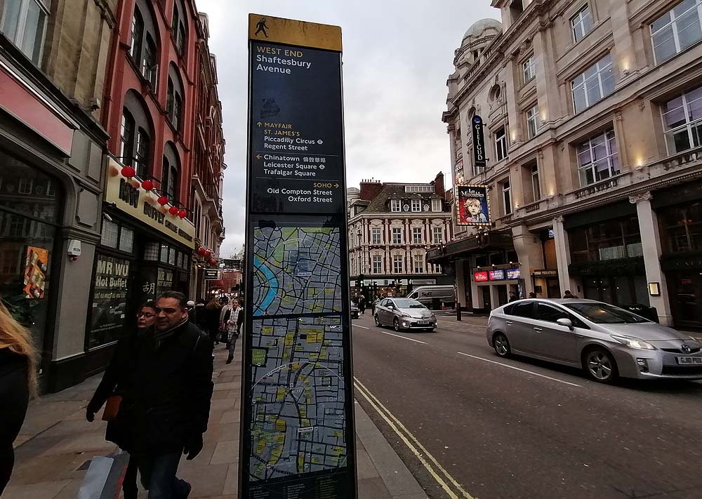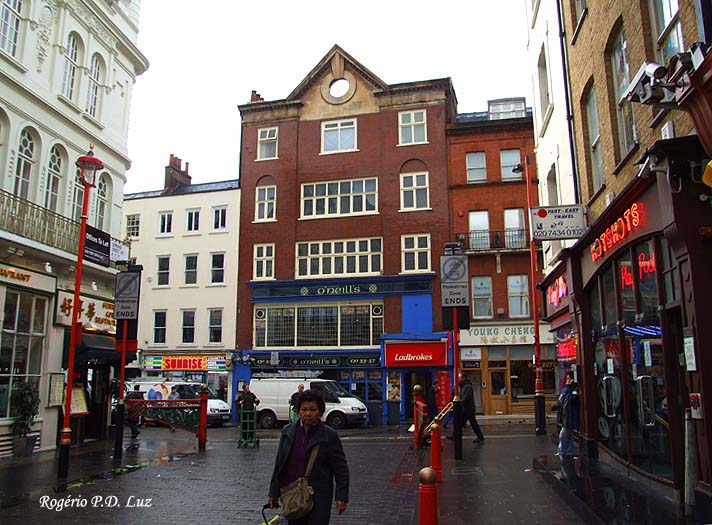 Devido ao pouco tempo disponível, pois já tínhamos que pegar o underground (metrô/metro) na estação Piccadilly Circus, a pouca distância, com tempo seguro para retornar ao renovado aeroporto de Heathrow, o passeio foi mais concentrado na via principal, a Gerrard Street, onde foi o início da nova Chinatown de Londres na década de 50, onde tivemos o nosso almoço chinês.
