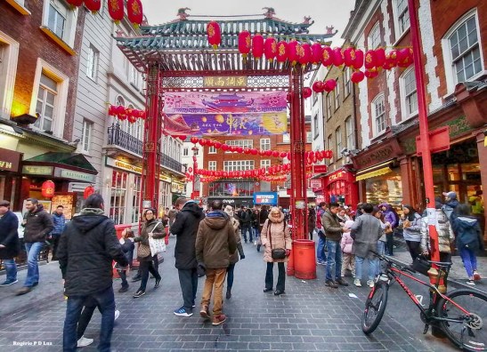 Chinatown, ou seja, bairro chinês mas também oriental em geral, em Londres, com uma grande variedade de restaurantes chineses mas também da culinária japonesa, vietnamita, e outras do Oriente, foi o nosso último local de passeio pela capital da Inglaterra e do Reino Unido, nas 13 horas de espera para o próximo voo de retorno para São Paulo, tendo como origem Hong Kong/Macau, em dezembro de 2019.