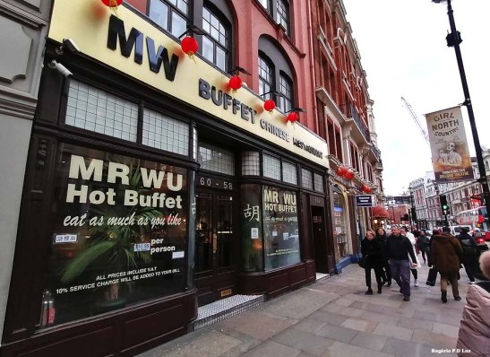 Na Shaftesbury Avenue, há este restaurante chinês Mr Wu do tipo “coma à vontade” por 10,95 (mais 10%) libras esterlina.