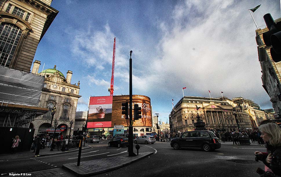 Antes da foto acima, à direita no final da Regent Street, fica a estação de metrô (underground) Piccadilly Circus, importante para circular por este importante miolo de Londres e centro comercial.