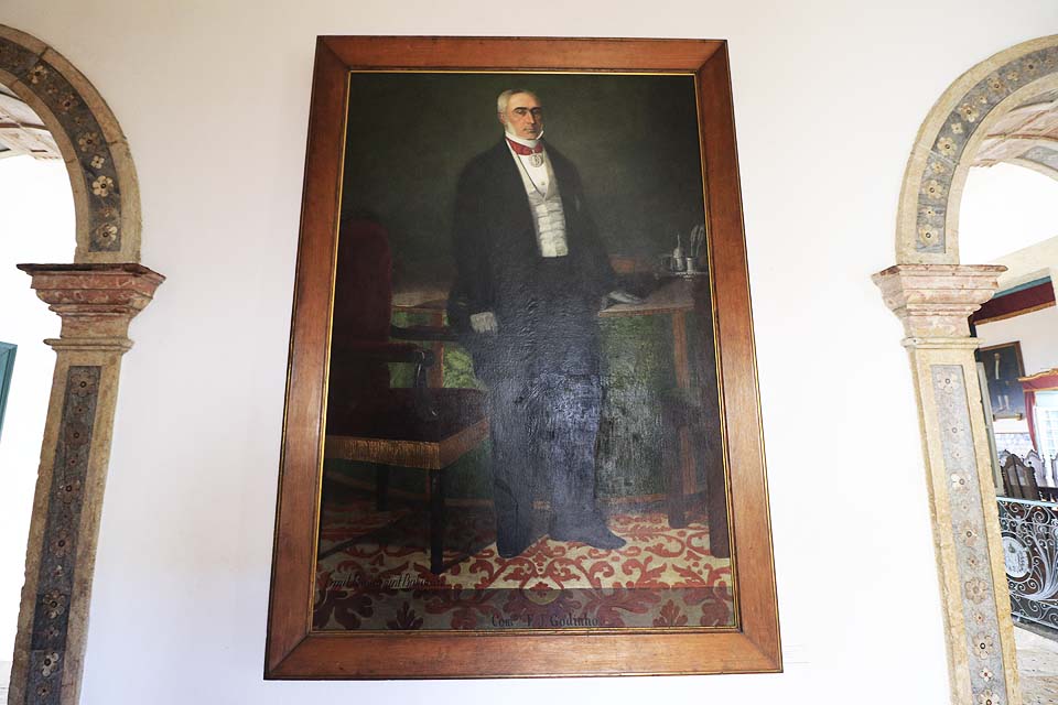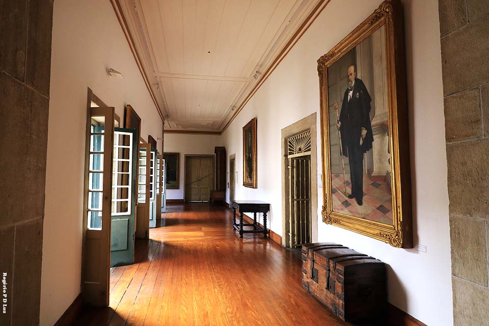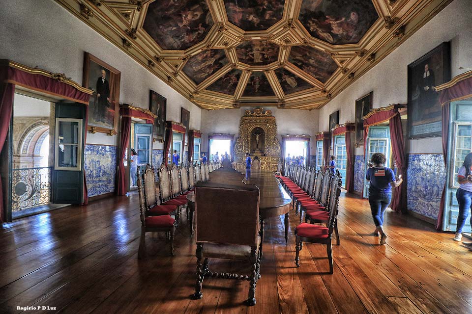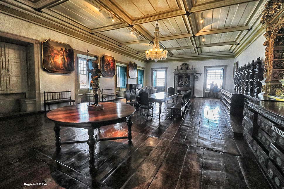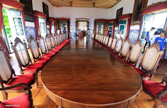 Sala de reunião do Provedor com membros da administração que tem a cadeira de jacarandá, com estofamento em veludo vermelho, especialmente confeccionada para receber Dom Pedro II, o Imperador do Brasil.