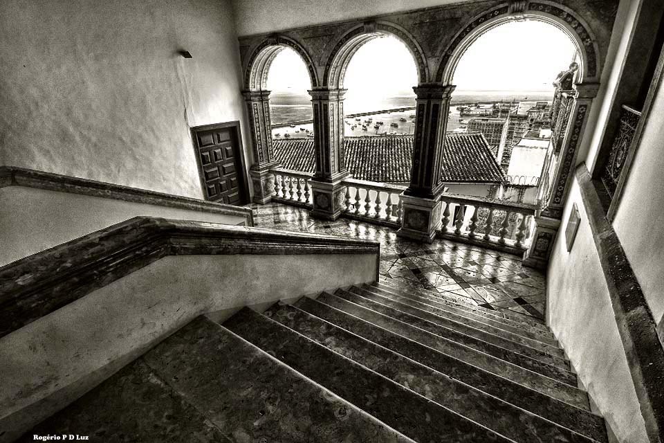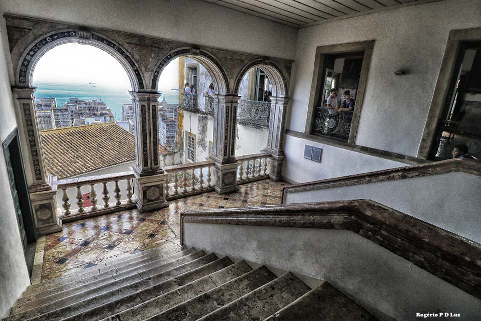 Espaço arquitetônico de concepção italiana feito com mármore português. Nas escadarias e arcadas enfeitadas com flores coloridas em mármore italiano, espanhol e francês, o que conferiu ao Museu da Misericórdia o tombamento do Instituto do Patrimônio Histórico e Artístico Nacional (IPHAN) em 1938. Pelas suas arcadas pode-se contemplar a Bahia de Todos os Santos.