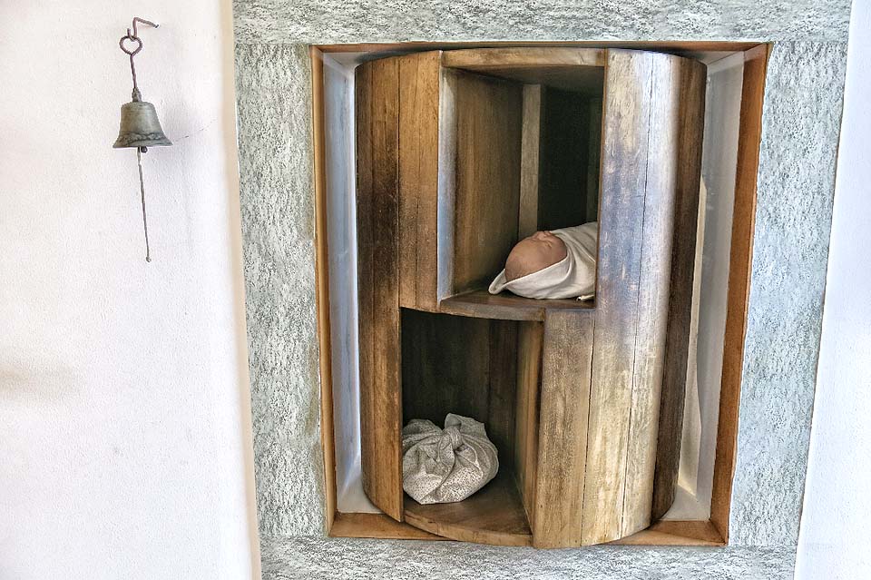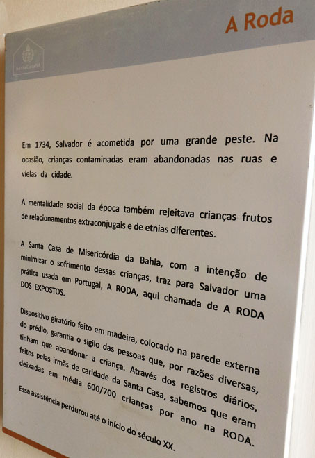 Réplica da Roda dos Expostos que possui um cilindro destinado a recolher, em anonimato, crianças doentes abandonadas nas ruas de Salvador durante a grande peste de 1734. Veja o histórico completo na segunda foto abaixo.