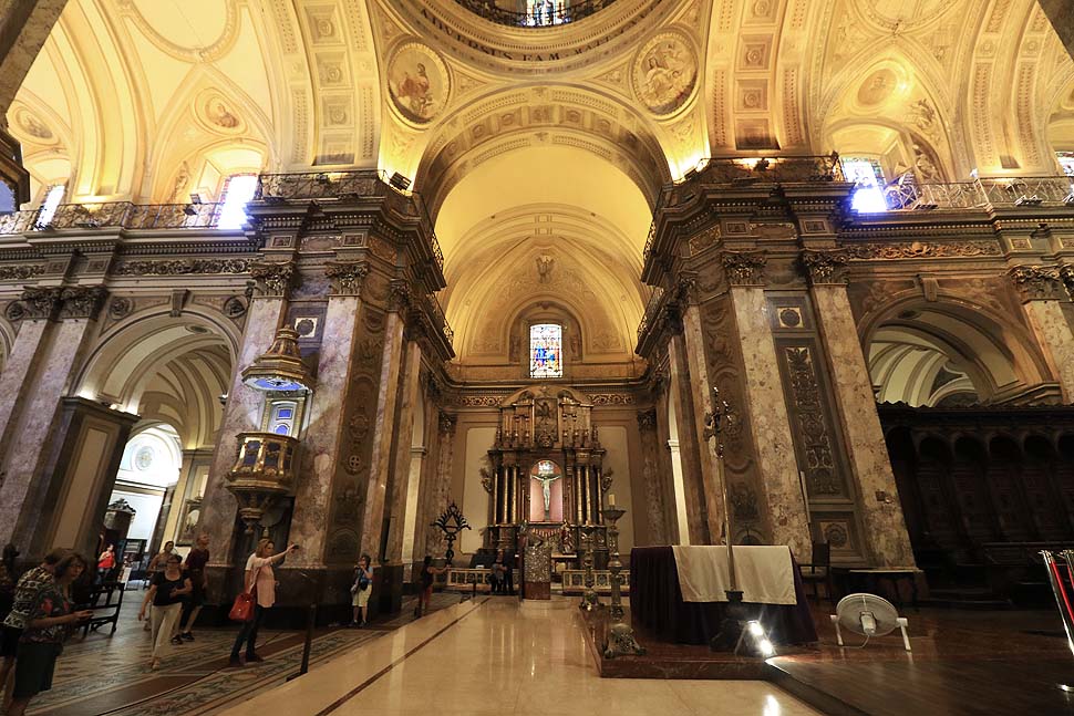 Finalmente, em 1877 o arquiteto Enrique Alberg reformou uma nave lateral para dar lugar ao mausoléu do General José de San Martín, obra do escultor Albert Ernest Carrier-Belleuse. As catorze figuras da Via Crucis são obra do italiano Francesco Domenighini, que originariamente se encontravam na Iglesia del Pilar. O altar mor, dourado e de grandes proporções, impõem-se como o ponto mais destacado do centro. Em 1942, a Catedral Metropolitana foi declarada Monumento Histórico Nacional e é considerada uma das obras arquitetônicas mais importantes da época da Colônia.