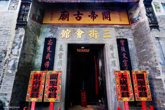 “Junto à Rua Sul do Mercado de S. Domingos, ainda existe um templo, designado “Sám Kái Wui Kun” 三街會館 (ou seja, “Sám Kai” 三 街 , três ruas, e “Wui Kun” 會館 , sede de uma corporação”, associação ou agremiação), o qual foi construído em data desconhecida, provavelmente em finais do século XVIII, onde outrora representantes do comércio de três ruas do Bairro Chinês (Rua das Estalagens, Rua dos Ervanários e Rua dos Mercadores) se reuniam, sempre que necessário, para tratar de assuntos de interesse comum.