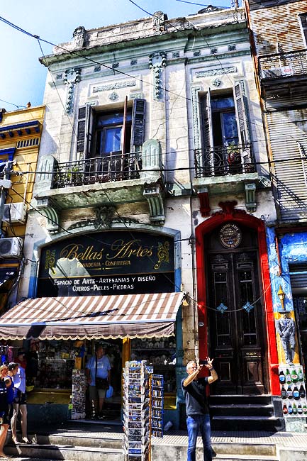 El Caminito tem uma característica peculiar: as casas são construídas com tábuas de madeira, placas e telhas de metal e pintadas com muitas cores. Explica-se que os estrangeiros com poucos recursos, principalmente espanhóis e italianos que foram a principal imigração que se fixou por lá, na construção das suas casas, usavam as tintas que sobravam dos navios do porto, ao lado, para pintá-las. Pode-se ver varandas e janelas enfeitadas com bonecos nas janelas, como do Maradona ou o argentino Papa Francisco e obras de arte nas paredes ou em estátuas.