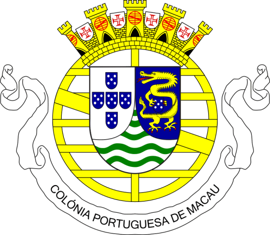 Brasão de armas de Macau portuguesa, de 8 de maio de 1935 até 11 de junho de 1951, com a expressão “Colónia“: