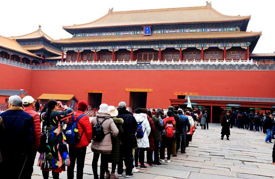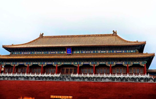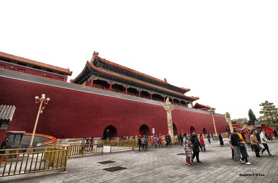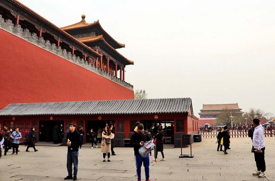 Após a passagem por dentro da Torre de Vigia Duanmen, fica o pátio externo da Cidade Proibida com o Portão Meridiano, que é o acesso à Cidade Proibida.