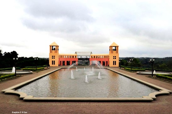 Fontes e espelhos d’água fazem parte da decoração do amplo parque.
