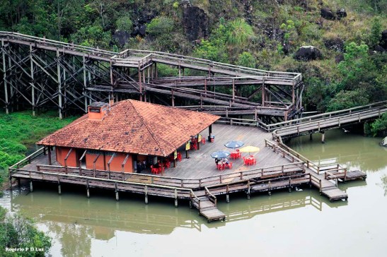 Na extremidade do Jardim há o mirante abaixo, onde pode-se contemplar o Parque Tanguá a 65 metros do lago na parte inferior.