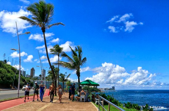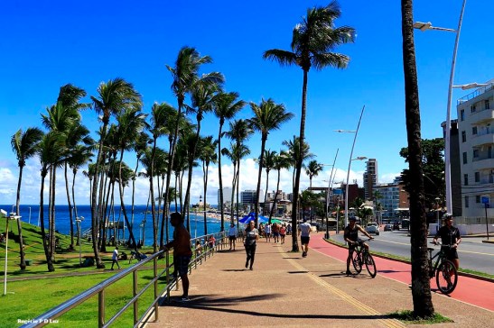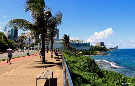 A Avenida Oceânica margeia a extensa orla marítima desse trecho de Salvador.