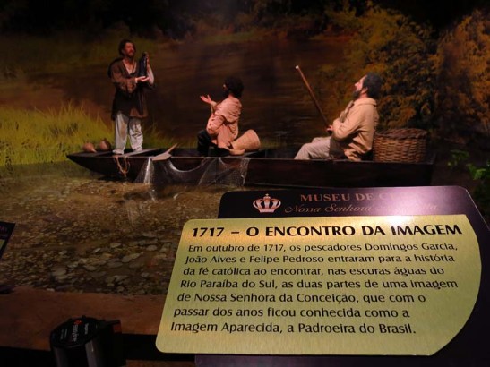 Foi após várias tentativas que os três pescadores tiraram das águas escuras do Rio Paraíba uma imagem de Nossa Senhora, que veio nas redes em dois pedaços: primeiro o corpo e, em seguida, rio abaixo, a cabeça.