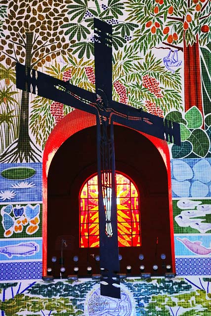 O crucifixo faz parte do acabamento da cúpula central, cuja obra de arte traz a própria Árvore da Vida, que se complementa com o Baldaquino, onde é contemplado o Paraíso que Deus criou para a humanidade habitar, assim descreve a publicação do Santuário.