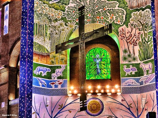Zenilda Cunha explicou na entrevista ao site da Arquidiocese de São Paulo, que: “no Baldaquino está a representação dos biomas brasileiros, as diferentes regiões que também acolheram o Mistério Pascal de Jesus. Bem acima do altar, a cruz é uma extensão da árvore da vida. Nessa árvore, a imagem de alguns pássaros em extinção no Brasil simboliza os peregrinos acolhidos pela Sabedoria de Deus”.