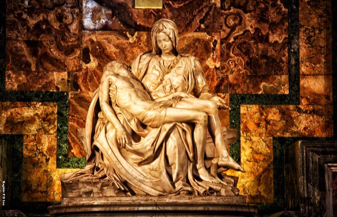 Uma Pietà [pjeˈta] (italiano para Piedade) é um tema da arte cristã em que é representada a Virgem Maria com o corpo morto de Jesus nos braços, após a crucificação. Associa-se assim às invocações de Nossa Senhora da Piedade e Nossa Senhora das Dores. (Wikipédia)
